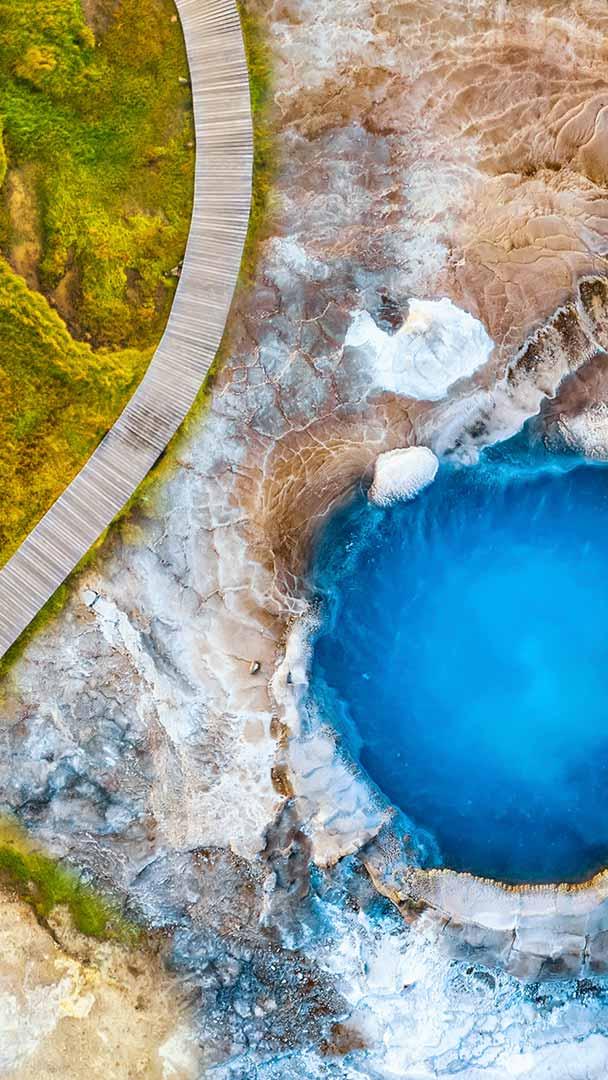 Have you ever wondered what happens when fire, ice and time negotiate the same territory? Iceland"s Hveravellir geothermal field has the answer. In this highland hotspot, energy from the Earth"s interior meets the icy surface, triggering a volatile dialogue between pressure, temperature and stone. Fumaroles hiss, steam curls into the air and the ground paints itself with sulphur whites, rust reds and ochre yellows—not only artistry, but chemical reactions driven by extreme heat. In today"s image, Bláhver, a natural hot spring, dazzles in electric blue. Its colour comes from mineral- and silica-rich waters that reflect light on the surface.