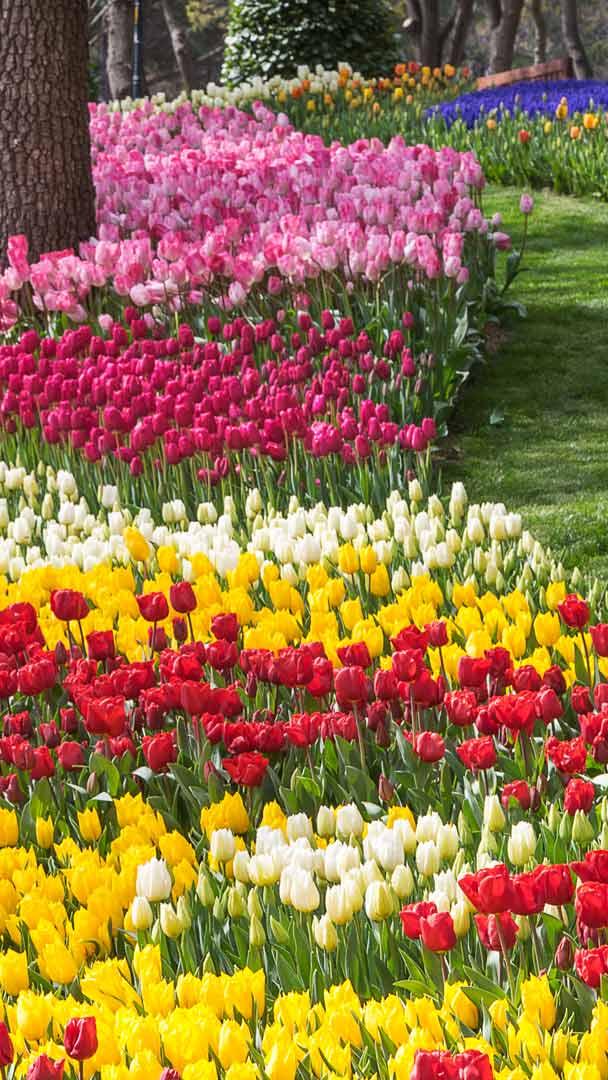 Tulipas em tons vibrantes Tulipas no Emirgan Park em Istambul, Turquia (© Ozbalci/Getty Images)
