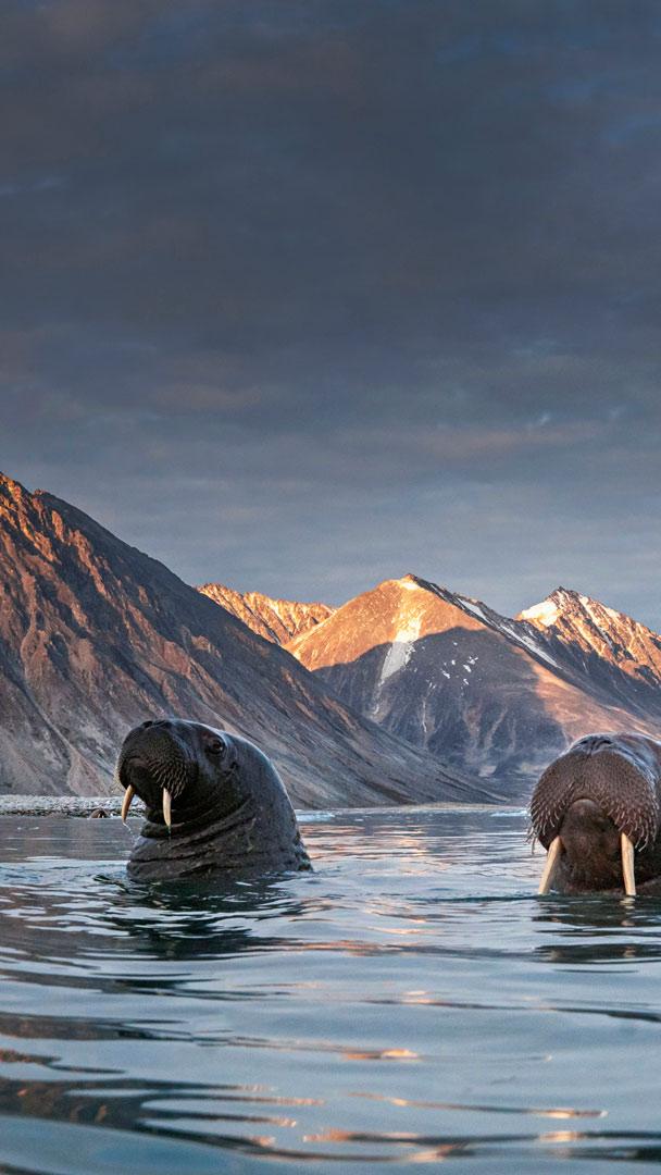 Siga o gelo e encontre as morsas! Colônia de morsas no norte de Spitsbergen, arquipélago de Svalbard, Noruega (© AWL Images/Danita Delimont)
