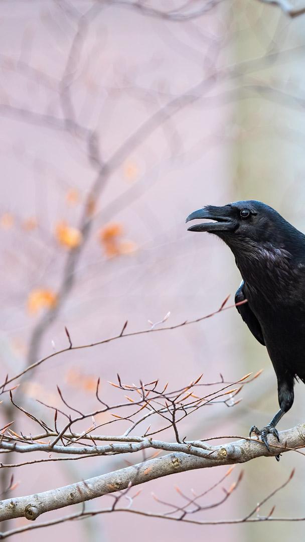Nunca Mais Corvo comum pousado em um galho (© WildMedia/Shutterstock)