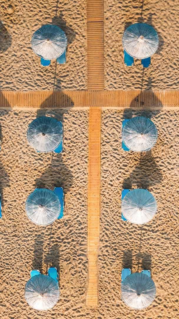No vai e vem da história Espreguiçadeiras na praia de Vai, Creta, Grécia (© borchee/Getty Images)