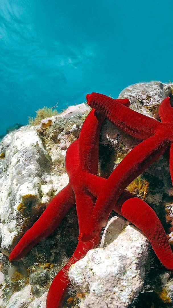 Stars in daylight Mediterranean red sea stars, Mediterranean Sea (© Hans Leijnse/Minden Pictures)