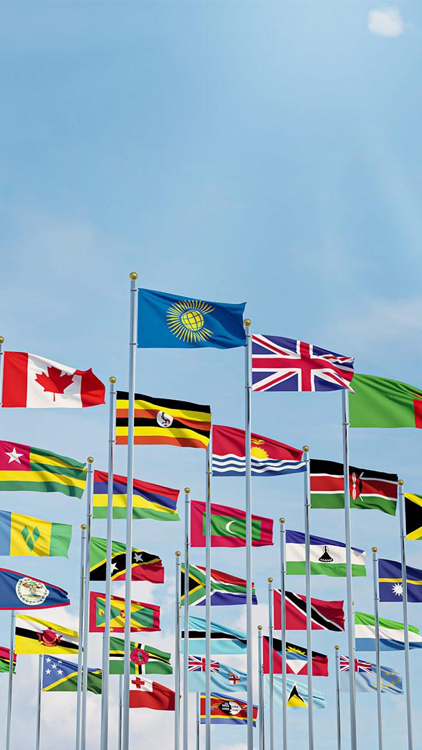 ‘A sustainable and peaceful common future’ Flags of the Commonwealth of Nations (© hamzehsh12/iStock/Getty Images Plus)