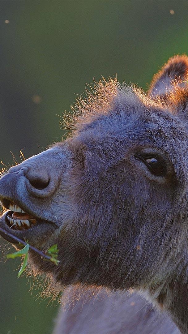 A delightful day for donkeys Domestic donkey feeding on cherry twigs (© Juniors Bildarchiv GmbH/Alamy)
