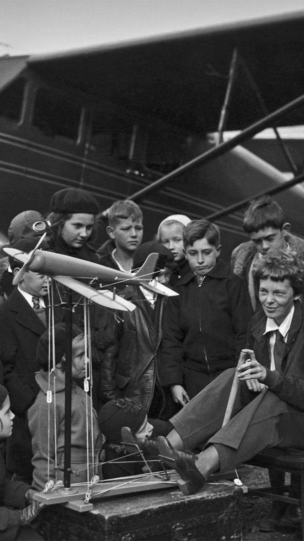 Her legend and mystery endure Amelia Earhart teaching students in Newark, New Jersey (© Bettmann/Getty Images)