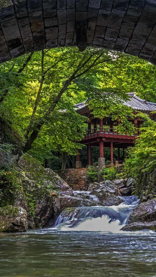 Bridging past and present Seungseon Bridge at Seonam Temple in Jogyesan Provincial Park, South Korea (© Aaron Choi/Getty Images)