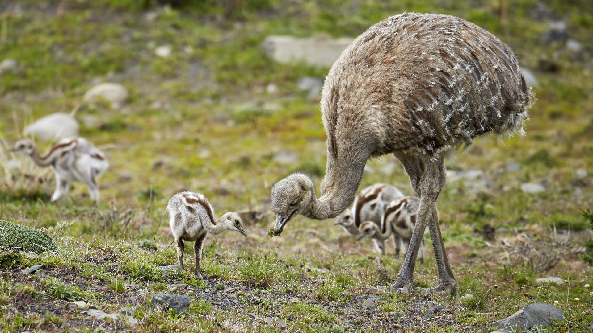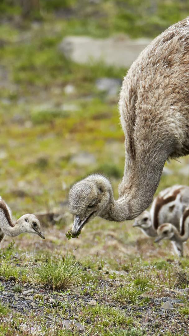 羽翼下的父爱 雄性小美洲鸵与幼鸟,托雷斯德尔潘恩国家公园,巴塔哥尼亚,智利 (© Ignacio Yufera/Minden Pictures)