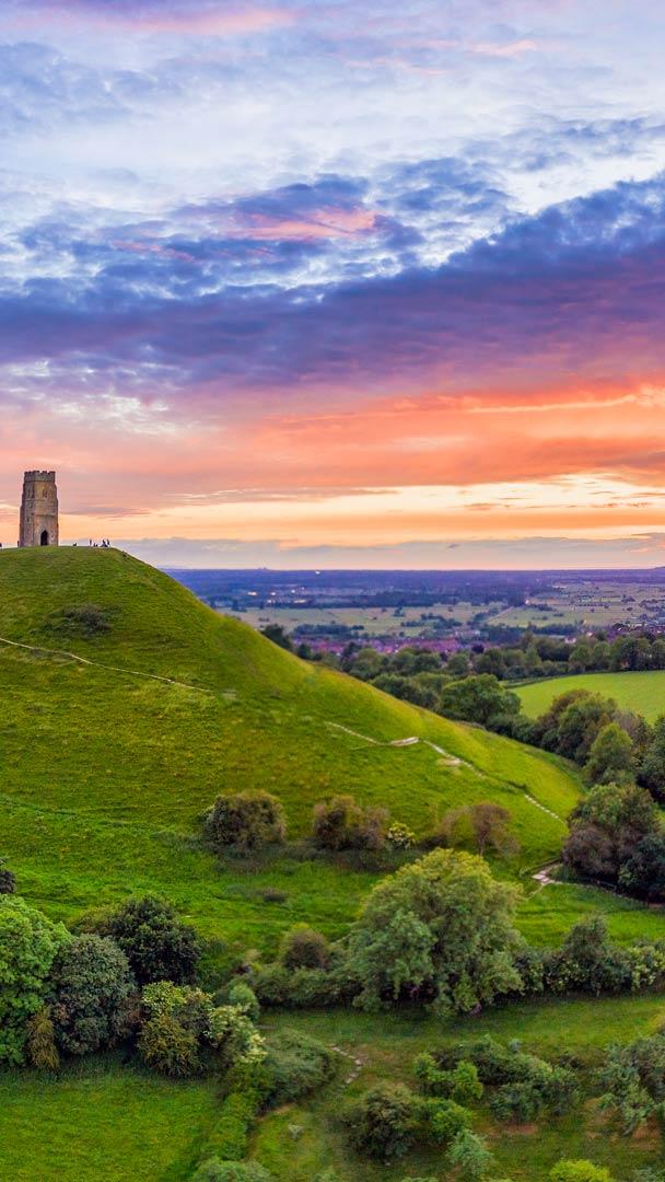 这里举办的是哪个音乐节? 格拉斯顿伯里托尔上的圣迈克尔塔, 格拉斯顿伯里, 萨默塞特郡, 英格兰 (© Gavin Hellier/Getty Images)