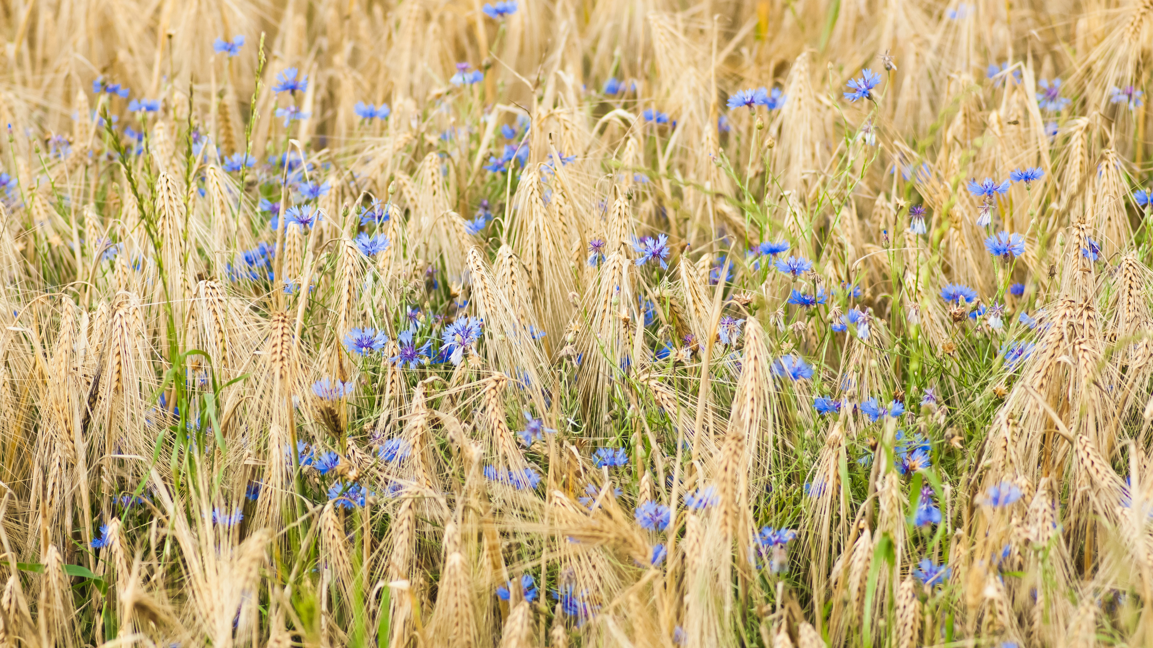 一片花田 大麦和矢车菊, 诺德豪森, 德国 (© Mandy Tabatt/Getty Images)