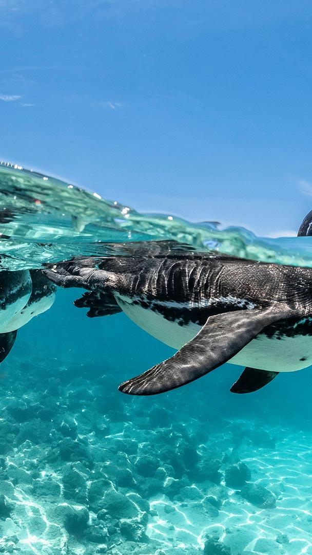 打破企鹅规则 加拉帕戈斯企鹅游泳, 加拉帕戈斯群岛, 厄瓜多尔 (© Henley Spiers/Nature Picture Library)
