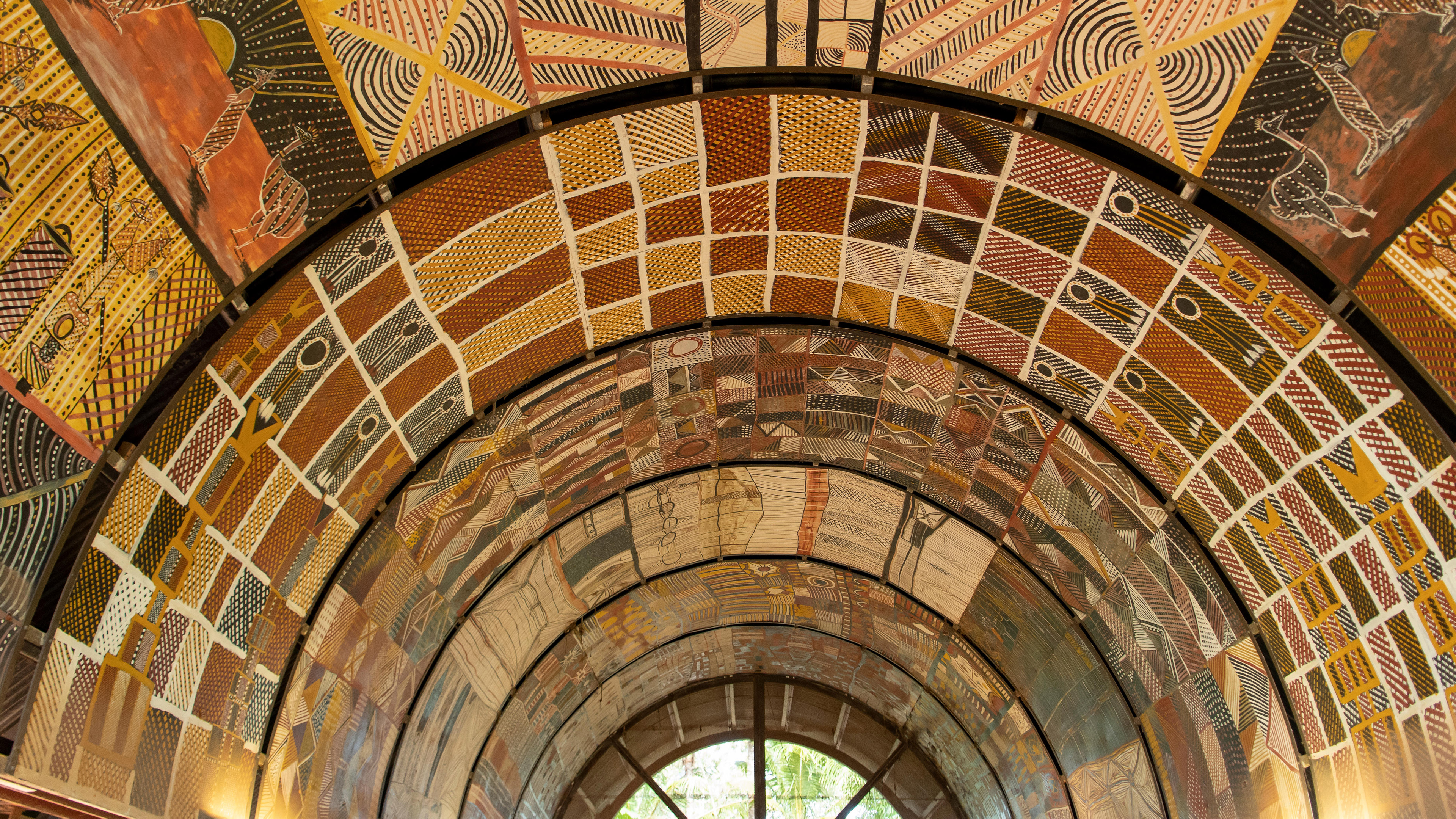 Ein Tag für die indigenen Bevölkerungsgruppen der Welt Indigenes Kunstwerk, Ngaruwanajirri Art Centre, Wurrumiyanga, Bathurst Island, Australien (© Robert Wyatt/Alamy)