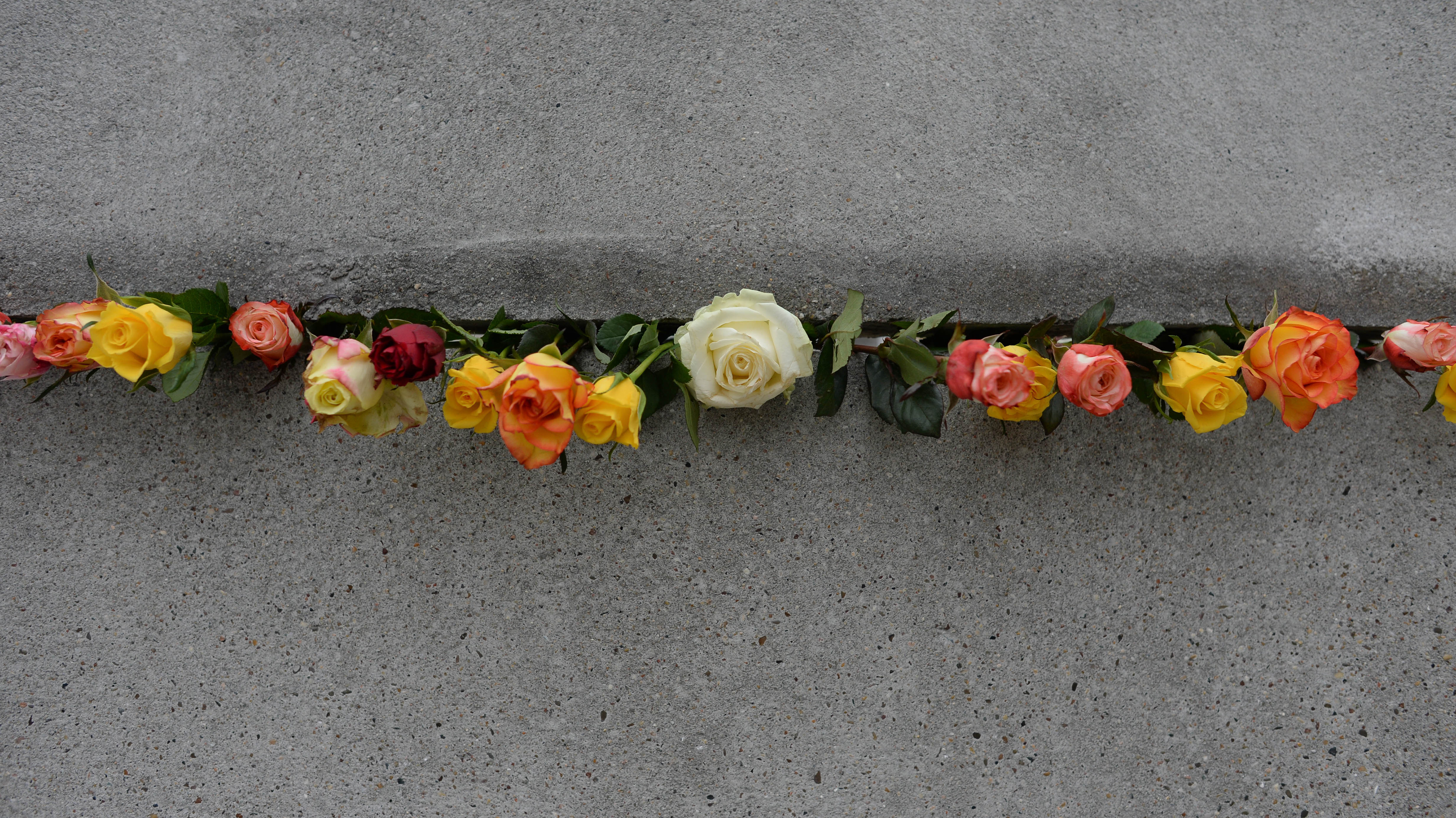 Gedenken an den Berliner Mauerfall Rosen in einem Mauerspalt zum Gedenken an den Jahrestag des Falls der Berliner Mauer, Berlin (© Artur Widak/Shutterstock)