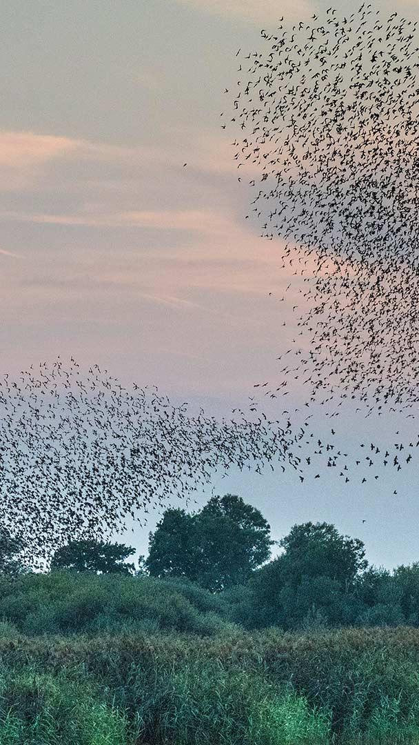 Faszinierender Formationsflug Herzförmiger Starenschwarm bei Lembruch, Naturpark Dümmer, Niedersachsen (© Christian Kosanetzky/Getty Images)