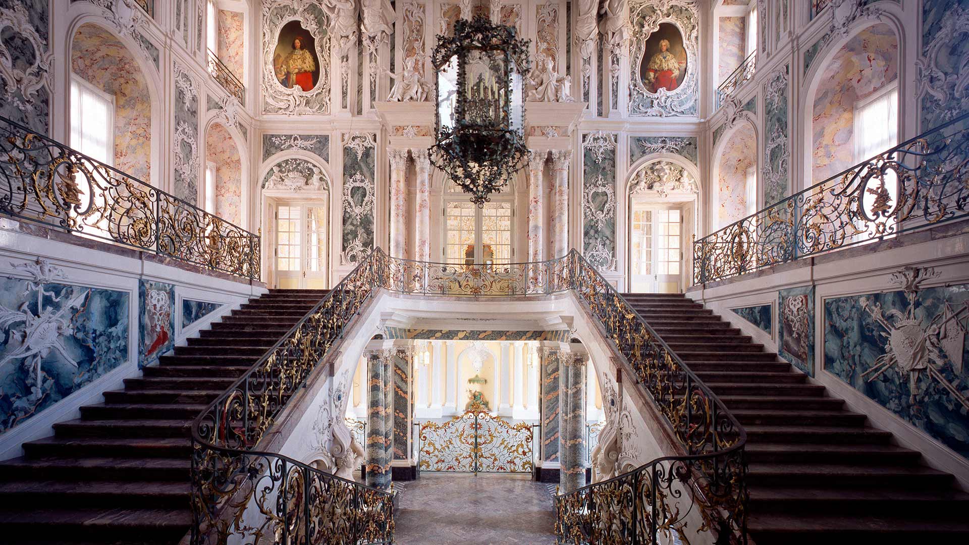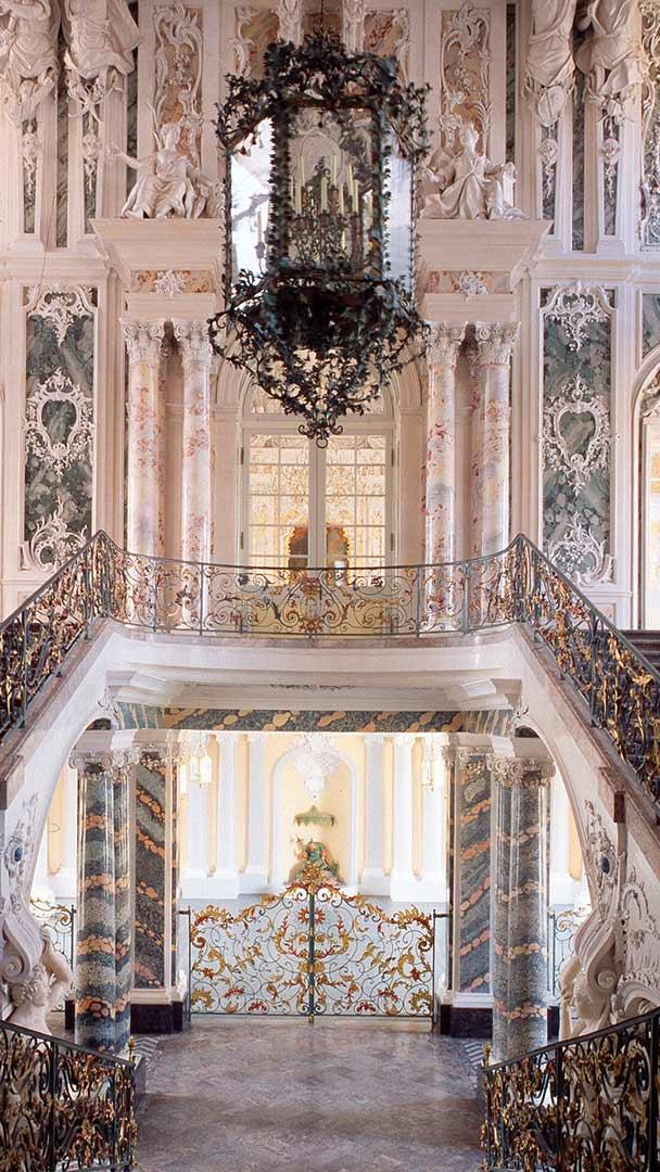 Schlossbesichtigung Treppenhaus im Schloss Augustusburg, Brühl, Nordrhein-Westfalen (© Florian Monheim/age fotostock)