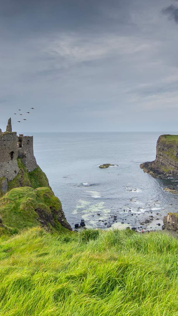 Sobre un acantilado rocoso del Atlántico Norte se alza Dunluce, uno de los castillos más impresionantes de Irlanda del Norte. Construido en el siglo XIII por los normandos y reformado en el XVI por la poderosa familia MacDonnell, su historia es tan escarpada como el terreno que lo sostiene.