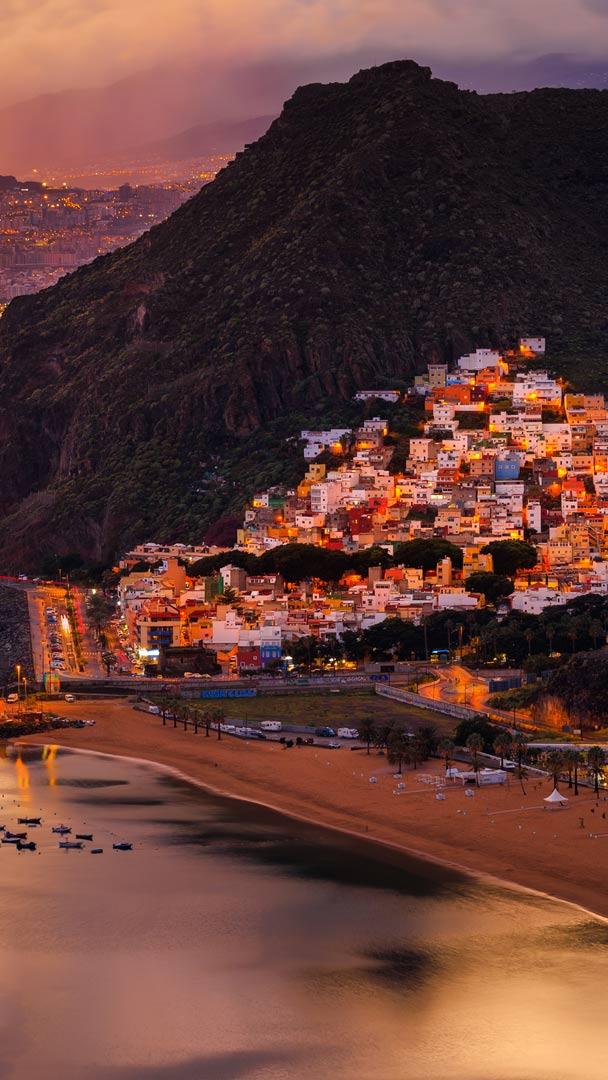 Vista del atardecer de San Andrés y Playa de Las Teresitas, Tenerife © EP-stock/Getty Images