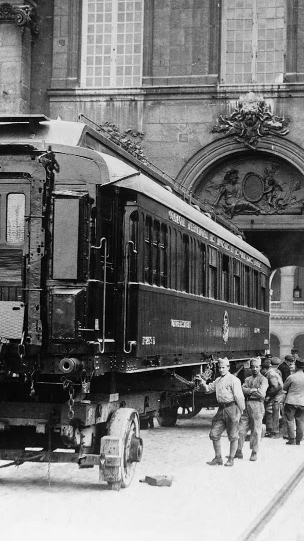 Le wagon de la paix Wagon dans lequel fut signé l’armistice de 1918, exposé à l’hôtel des Invalides à Paris, de 1921 à 1927 (© Hulton-Deutsch Collection/CORBIS/Corbis via Getty Images)