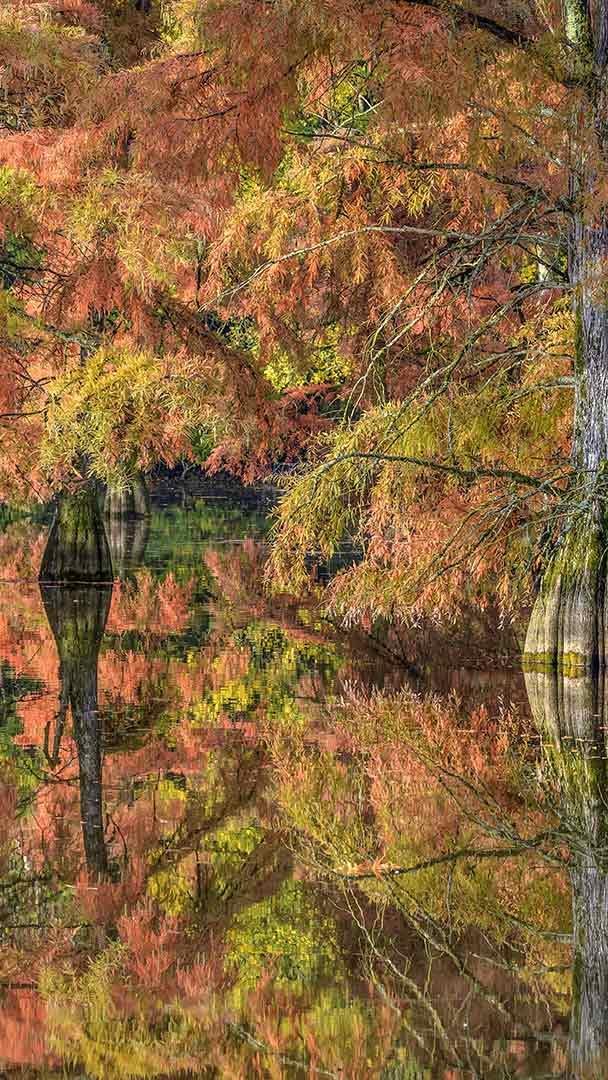 Reflets dautomne Cyprès chauves aux couleurs d’automne en Isère (© Jean-Philippe Delobelle/Minden Images)