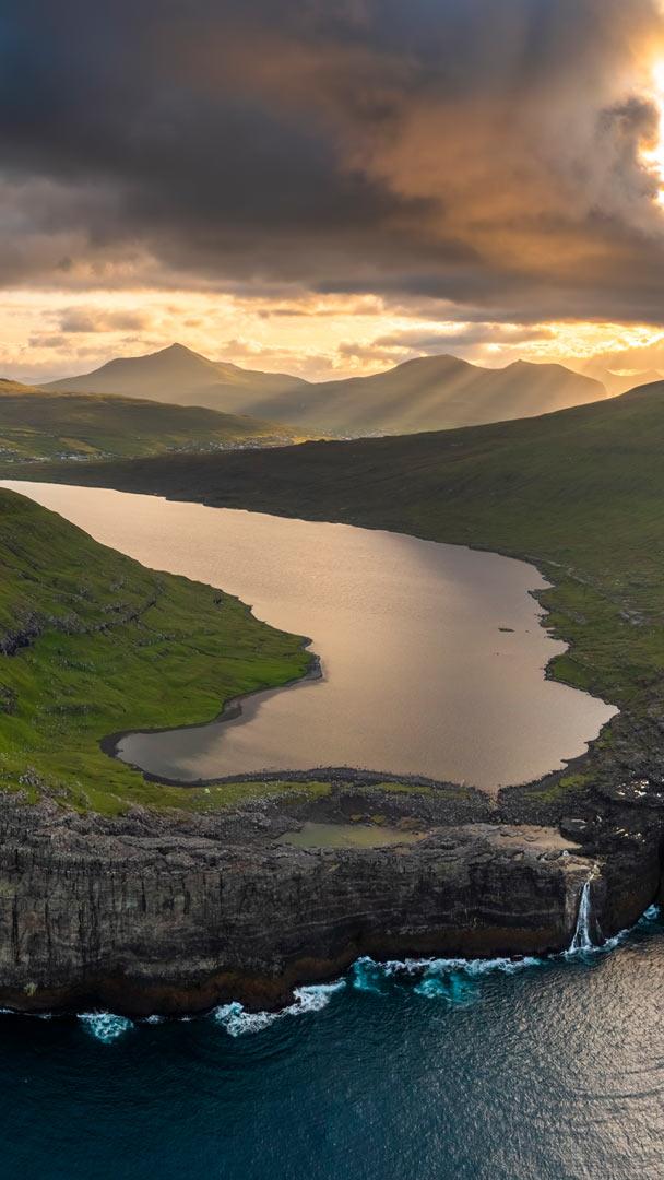 Today, let us explore an optical illusion in the Faroe Islands, an autonomous administrative division of the Kingdom of Denmark. Also called Leitisvatn, this lake on the island of Vágar appears to float far above the ocean. In reality, it sits only around 30 metres above sea level. As the largest lake in the Faroes, Sørvágsvatn has a surface area of over 3 square kilometres and feeds the Bøsdalafossur waterfall, where its waters pour dramatically into the sea.