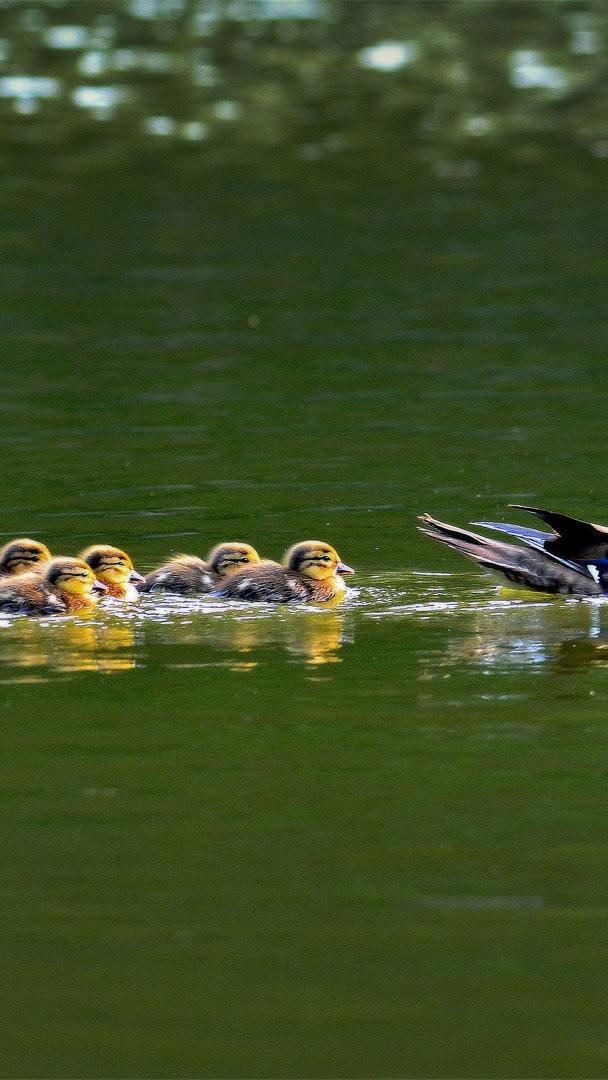 This lesson is going swimmingly Mandarin duck hen with ducklings in South Korea (© VDCM image/Getty Images)