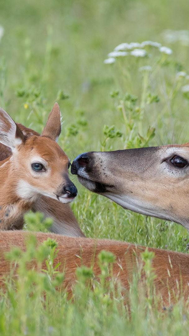 Buona festa della mamma! Cervo dalla coda bianca e cerbiatto appena nato, Montana (© Donald M. Jones/Minden Pictures)