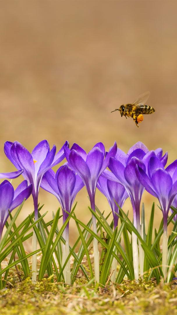 L’importanza delle api Un’ape che vola sui crochi nei Monti Tatra, Polonia (© MirekKijewski/Getty Images)