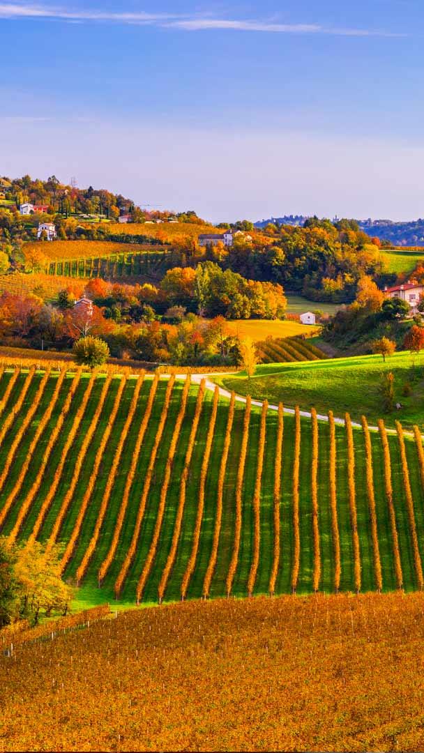 Un calice di vino? Colline del Prosecco di Conegliano e Valdobbiadene, Veneto, Italia (© Olimpio Fantuz/Sime/eStock Photo)