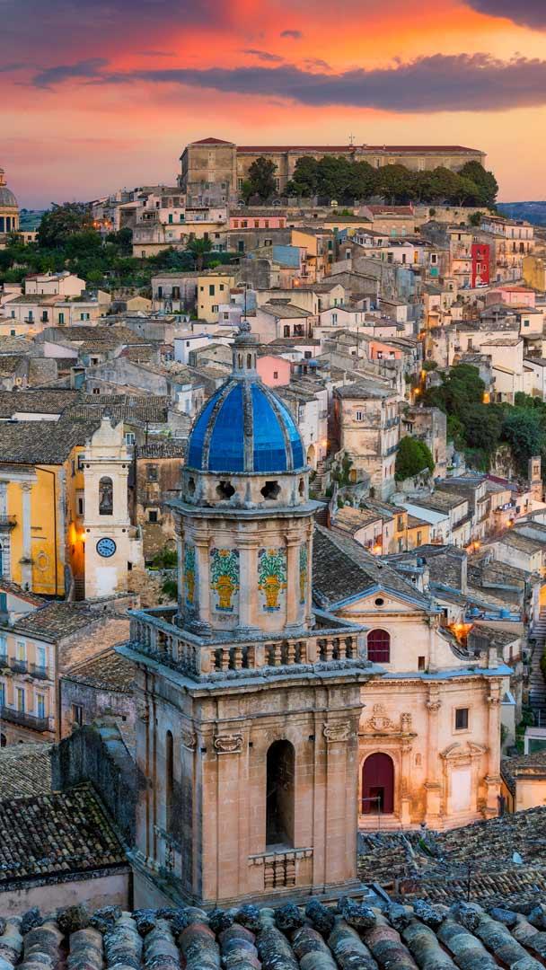 Tutta la bellezza della Sicilia Veduta della città di Ragusa Ibla, città patrimonio dellUNESCO (© DaLiu/iStock/Getty Images Plus)