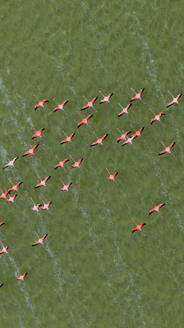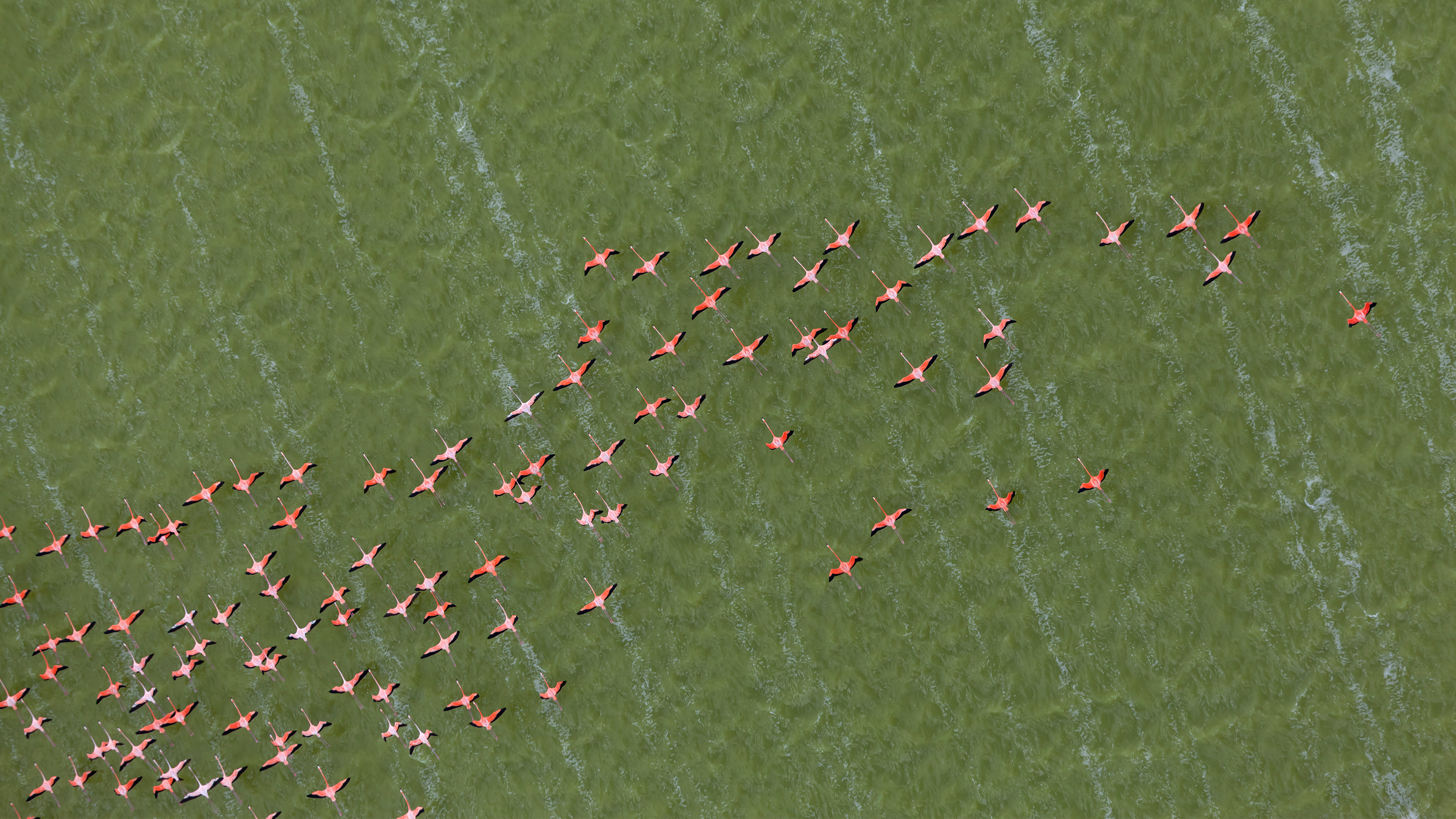 Stravaganza in volo Fenicotteri caraibici, Penisola dello Yucatán, Messico (© Claudio Contreras/NPL/Minden Pictures)