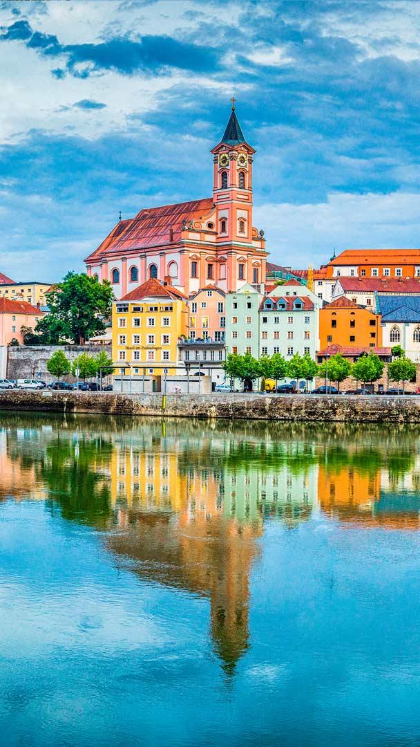 パッサウは、ドイツのバイエルン州にある美しい都市で、その歴史はローマ時代まで遡ります。町としての発展が始まったのは、5 世紀に修道院が建てられた後で、739 年には司教座も置かれました。中世には重要な交易拠点として栄えましたが、洪水などの災厄により、何度か破壊と再建を繰り返しました。17 世紀の大火災の後、建物が再建され、街並みは当時流行していたバロック様式に統一されました…