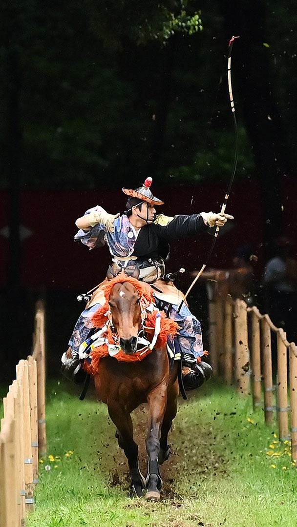 今日は「文化の日」 矢を放つ流鏑馬の射手, 東京 (© CHARLY TRIBALLEAU/Getty images)