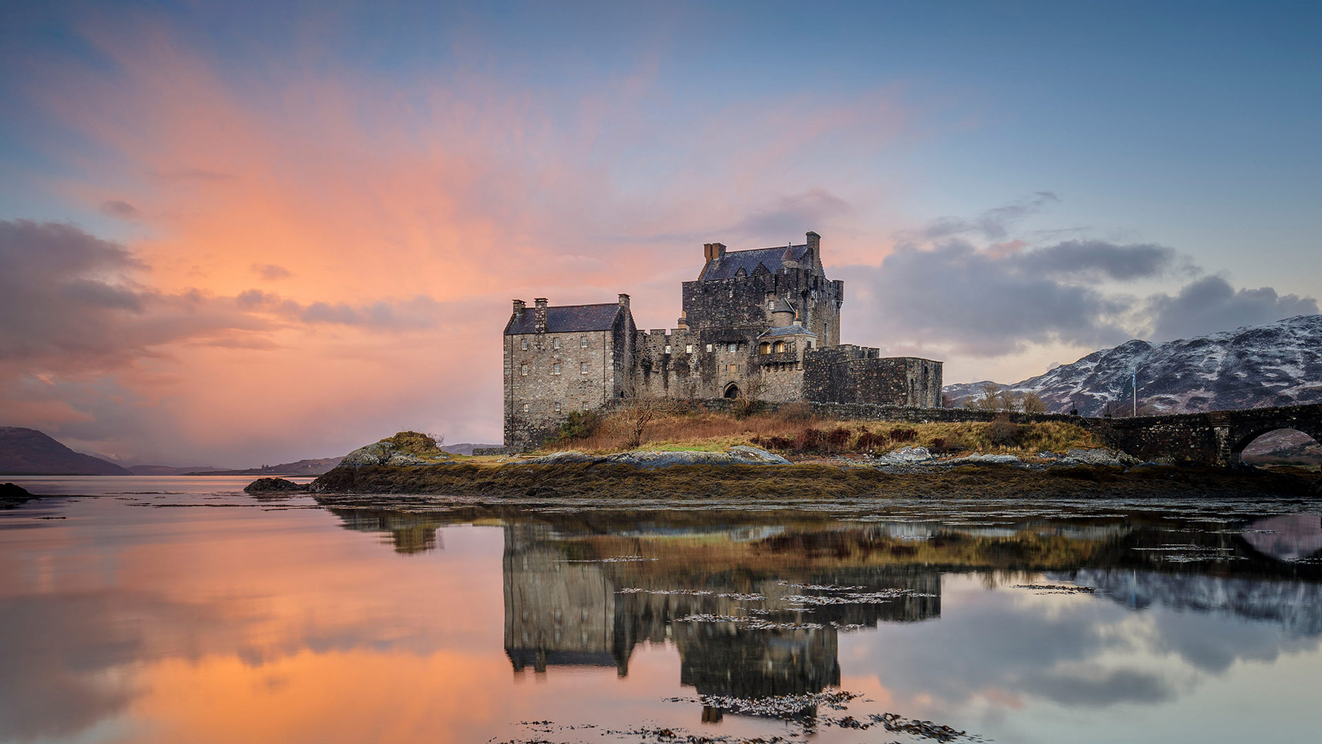 Icon of the Highlands Dawn at Eilean Donan Castle on Loch Duich, Loch Alsh and Loch Long, Highlands (© Joe Daniel Price/Getty Images)