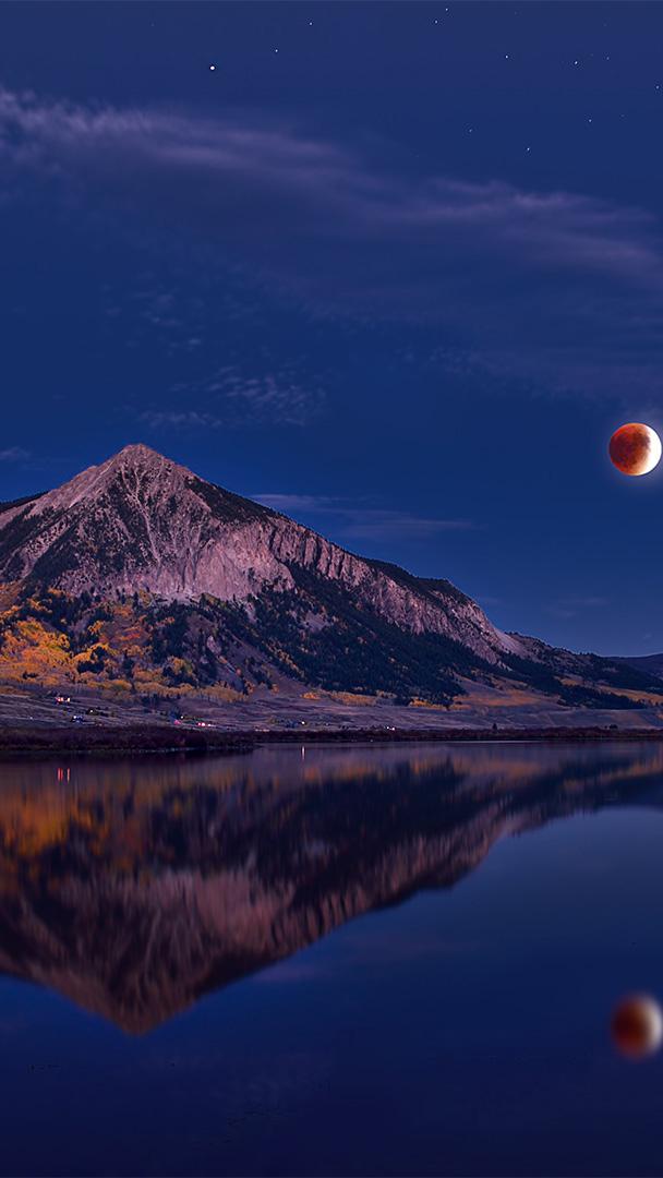 Blood moon Lunar eclipse above Mount Crested Butte, Colorado, USA (© Mengzhonghua Photography/Getty Images)