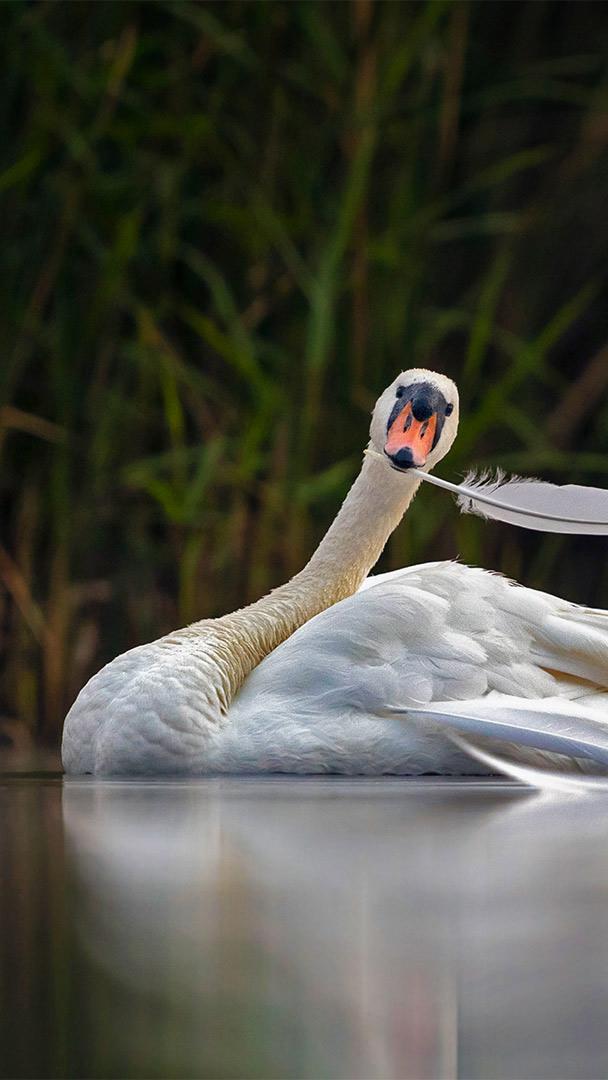 In fine feather Mute swan in Valkenhorst Nature Reserve, near Valkenswaard, the Netherlands (© David Pattyn/Minden Pictures)