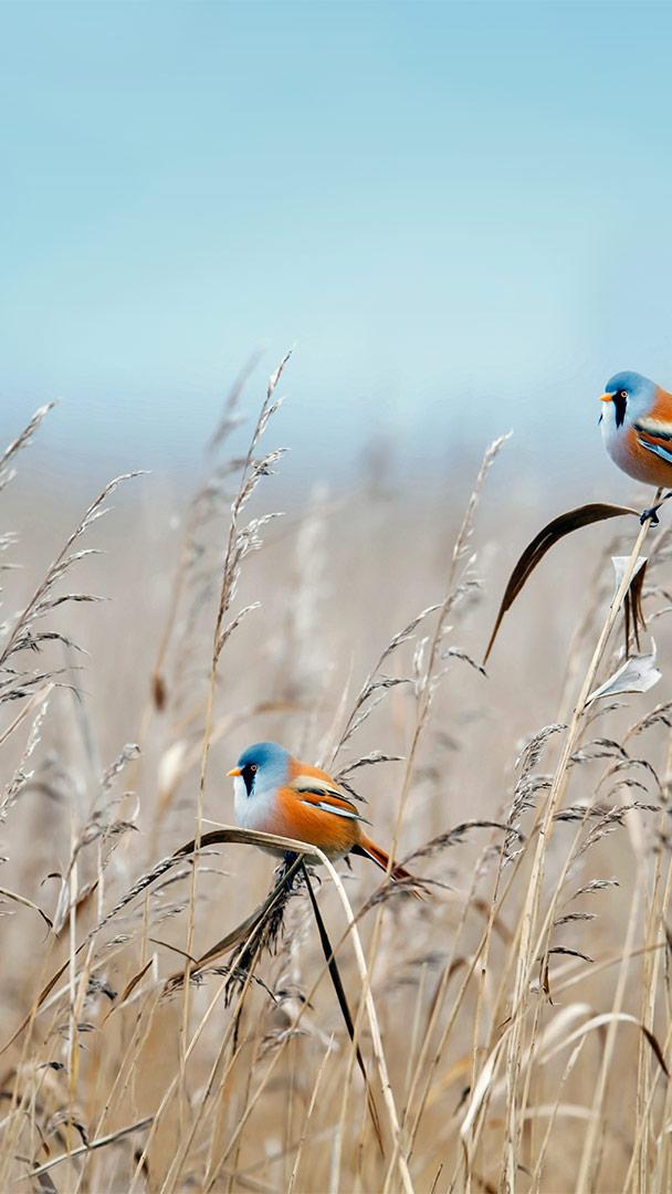 More of a moustache than a beard? Bearded reedlings at a wetland in Flevoland, Netherlands (© Gert-Jan IJzerman/Minden Pictures)