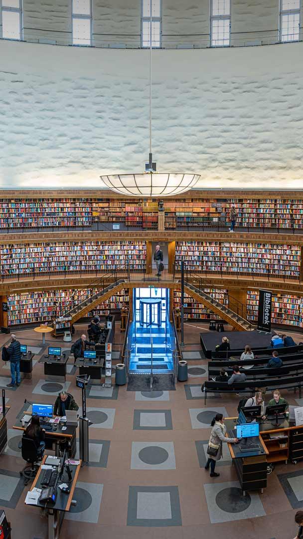 If you"re ever in Sweden and looking for a quiet place to get "shelved," the Stockholm Public Library, or "Stadsbiblioteket" as it is known to locals, is your spot. Opened in 1928, this library is not just a place to borrow books; it"s a cultural icon and an architectural marvel. Here, more than 2 million volumes wait to unfold stories in over 100 languages. Designed by architect Erik Gunnar Asplund in the 1920s, this Nordic Classicist composition features the geometry of a cylinder intersecting a cubic base. Its accessible façade belies a treasure trove within a 360-degree rotunda, inviting even the casual reader into a literal circle of knowledge.
