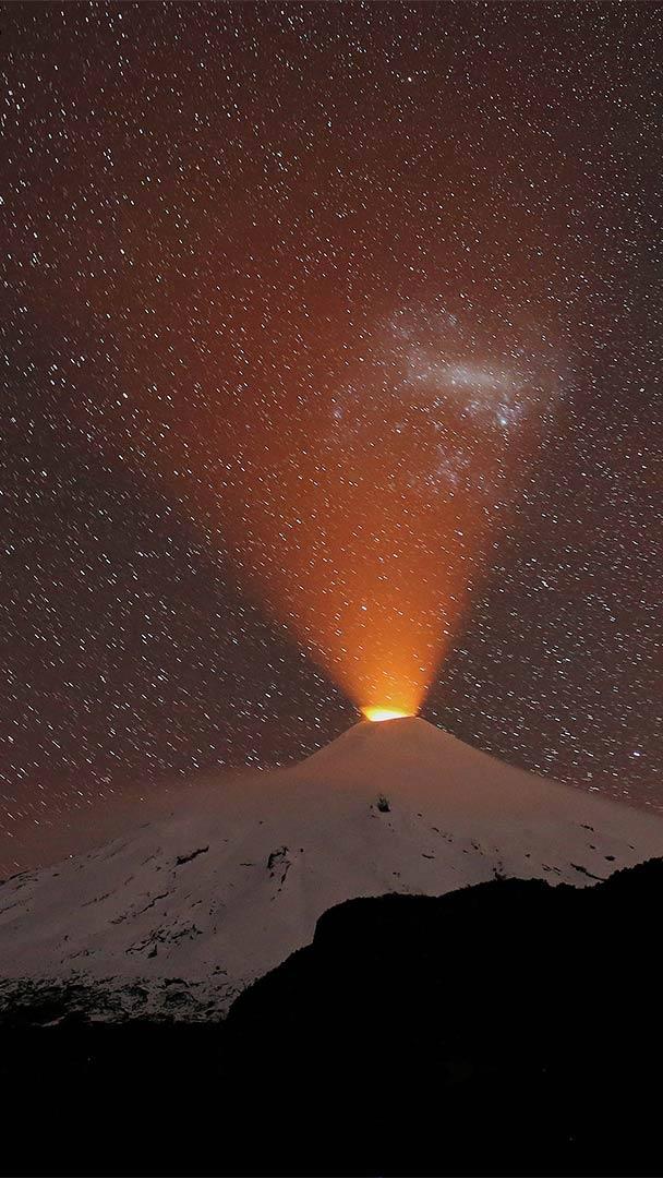 That’s the Villarrica volcano providing fireworks for our observance of Chile’s Independence Day celebrations—called Fiestas Patrias—taking place September 18 and 19. The second-most active volcano in South America, Villarrica is known to the indigenous Mapuche people as Rucapillán (Devil’s House). The eruption shown in this photo, which was taken on September 2, 2018, alarmed nearby residents, but it wasn’t nearly as destructive as other relatively recent eruptions, like one in 2015 that prompted authorities to evacuate thousands of people.
