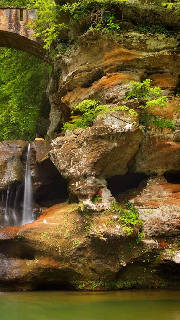Hocking Hills State Park, for National Public Lands Day. Hocking Hills is a 2,356-acre park in southern Ohio offering over 25 miles of hiking trails that pass by unusual rock formations, recess caves, and stunning waterfalls. This is Upper Falls, at one of the park"s most popular hiking destinations, Old Man"s Cave. This huge recess cave, as the legend goes, was named for a hermit who lived here in the 1800s. Then there"s Devil"s Bathtub, Conkle"s Hollow, and Rock House—sites worthy of a visit for their names alone, though the scenery won"t disappoint.