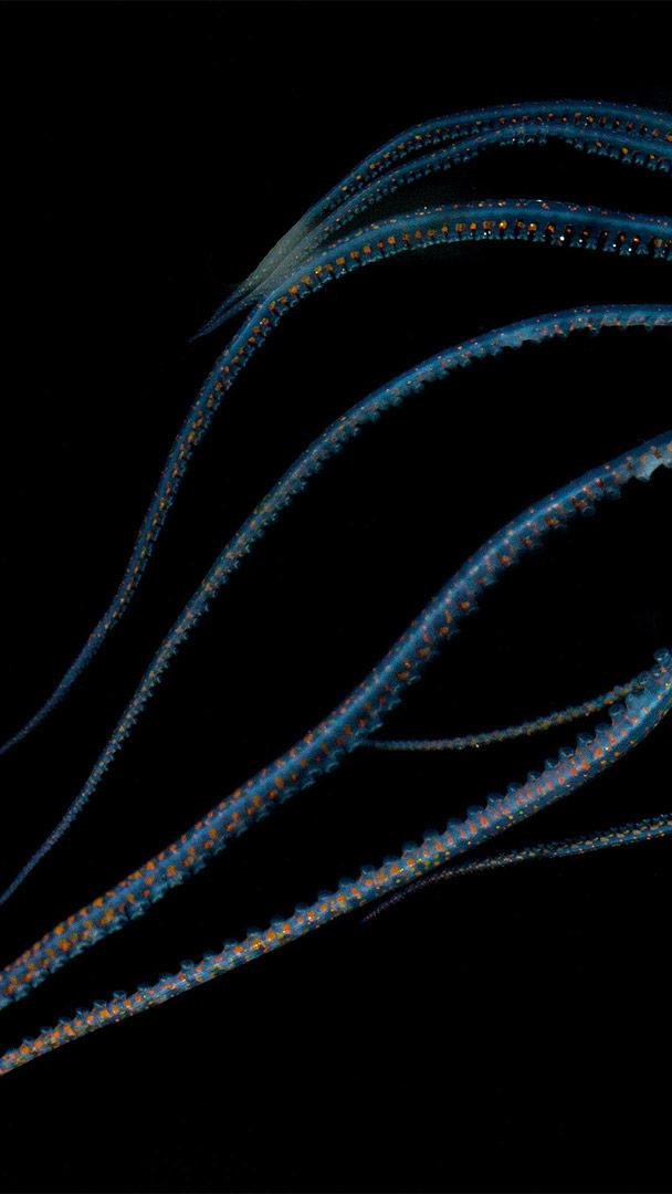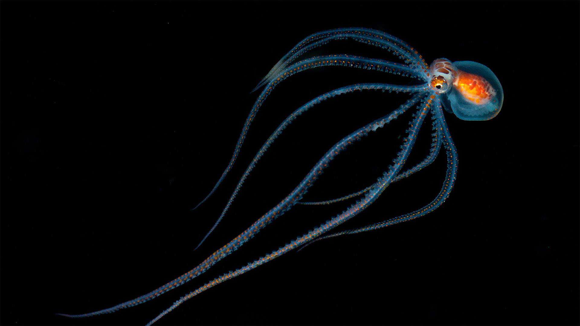 For World Octopus Day, we"re lighting up your screen with a shot of a nocturnal octopus from the genus Callistoctopus in its larval stage. It was photographed on a night dive near the Big Island of Hawaii. You may not consider octopuses cute and cuddly, but they have charisma to burn. The highly intelligent species has been observed solving puzzles, unscrewing lids, and even using tools. One study recorded octopuses collecting discarded coconut shells and carrying them back to their dens to use as shelter. In another incident that made headlines, an octopus named Otto taunted staff at his aquarium by repeatedly crawling out of his tank to shoot water at the overhead lights, causing them to short-circuit. Octopuses aren"t all brains—they"ve got heart as well (three, in fact!). The more we learn about this species, the more impressed we are. Can"t every day be World Octopus Day?