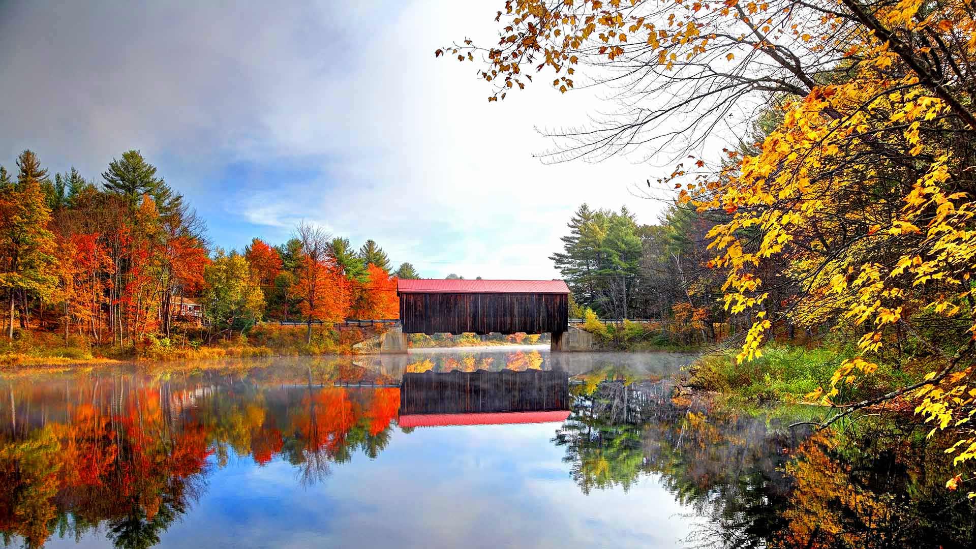 The Hancock-Greenfield Bridge (aka County Bridge) has offered a picturesque passage over the Contoocook River in southern New Hampshire since 1937. It was built to replace another covered bridge that had been destroyed in a flood. But why even build a covered bridge? In a word, longevity. The roof and walls help protect the timber supports from rot. For comparison, an uncovered wooden bridge lasts an average of 20 years, while the covered variety can reach 100 years or more.