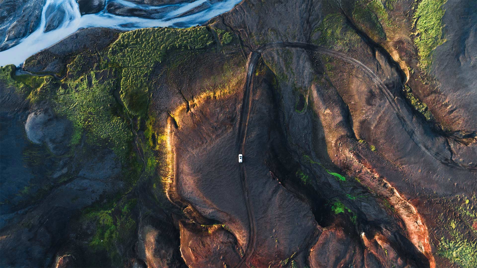 There"s a good chance the occupants of that car you can see in this photo, winding along a remote highway in the Highlands of Iceland, won"t encounter any other visitors to this desolate region. Accessible only during the summertime, roads across the Icelandic Highlands pass through mostly uninhabited volcanic desert. Frequent volcanic activity in the area creates a porous topsoil full of chemical compounds that aren"t conducive to plant growth. Besides, much of the rainfall is quickly absorbed so plant life only appears alongside glacial rivers. Despite this seemingly unwelcoming environment, adventurous travelers come to the Highlands every summer to see firsthand an ecosystem so unearthly that NASA conducted training missions here for some of its Apollo astronauts.