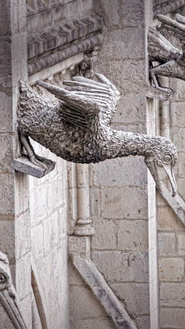 "Goofy" might be a better descriptor, but these seabird statues lining an outer wall of an Ecuadorian cathedral are called "grotesques"—the architectural term for a statue ornamenting the side of a building. But hang on…don"t we call those "gargoyles"? Not exactly. Gargoyles are simply grotesques that boast a specific, practical feature: spouts that convey water from rain gutters away from the building.