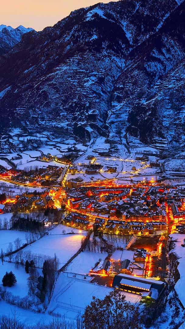 When snow blankets the steep slopes of the Pyrenees—the mountain range that forms a natural border between Spain and France—the cozy Spanish village of Benasque offers a cheerful refuge on a winter"s eve. Beautifully preserved Romanesque and Renaissance manors and churches line the narrow cobblestone streets, and it"s easy to feel as though you"ve stepped back in time. Aside from these cultural charms, most visitors come to Benasque for outdoor adventure. Surrounded by the highest peaks of the Pyrenees, the Benasque Valley receives heavy snowfall and is a popular skiing destination. Summer attracts even more visitors to the area, when hiking, mountain biking, paragliding, and river rafting are big draws.