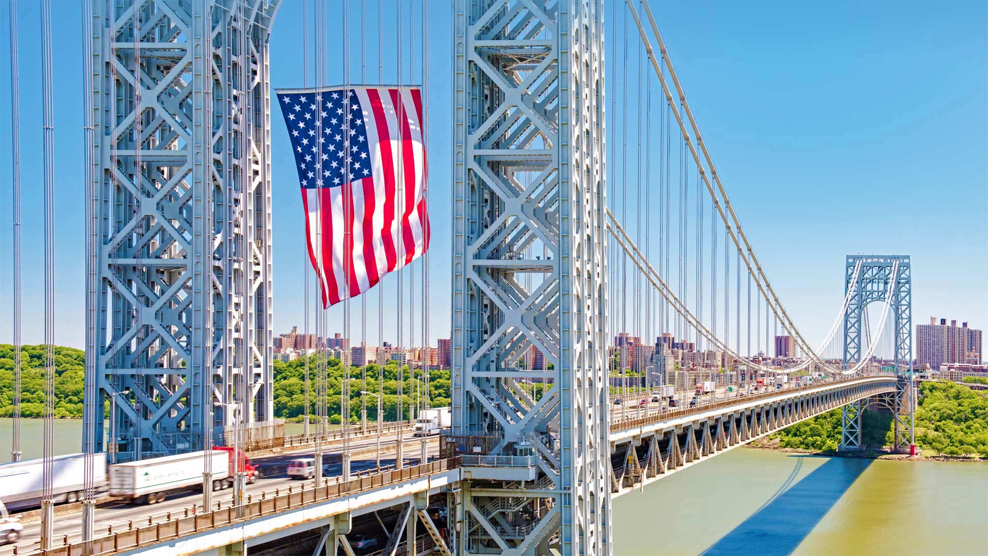 Because it"s Flag Day in the US, we"re at the site of what"s believed to be the largest free-flying US flag in the land. It"s crowning the George Washington Bridge connecting Manhattan with Fort Lee, New Jersey. For those crossing the Hudson today, Old Glory will be on full display on the New Jersey tower, at least between the hours of 7 AM and 1:15 PM, after which New York Port Authority workers will reel the 60-by-90-foot, 450-pound nylon flag back into the tube where it"s housed, suspended hundreds of feet above the busy crossing. The flag is set to come out again on July 4, and if you can"t catch it then, you"ll still have a chance to see this enormous flag a few more times this year, as it is scheduled to fly again on Labor Day, September 11, and Veteran"s Day.