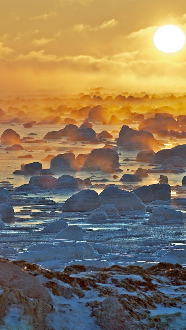 The largest carnivore on land roams the icy north. Polar bears like this one spend much of their lives on sea ice rather than terra firma, stalking their favorite prey: seals. Superbly insulated against the cold, polar bears are uniquely suited for life on the ice—so they"re especially vulnerable to a warming planet. Their plight is the focus of Polar Bear Week, observed the first week of every November, bringing attention to these creatures who live far out of sight of most humans.