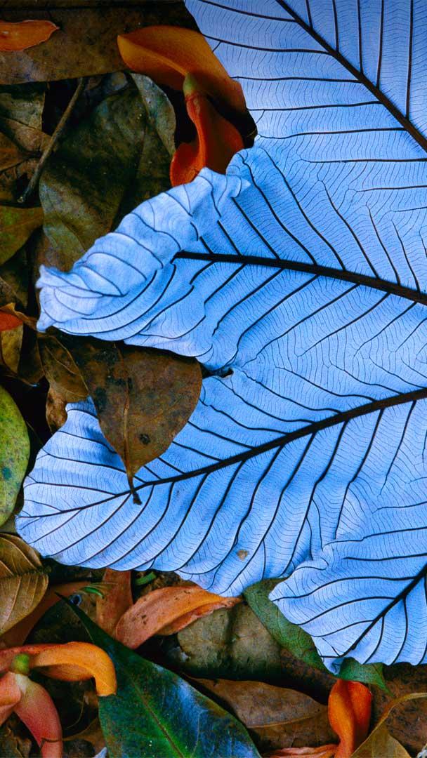 Cecropia leaf and lobster claw petals in Mexico © Gerry Ellis/Minden Pictures