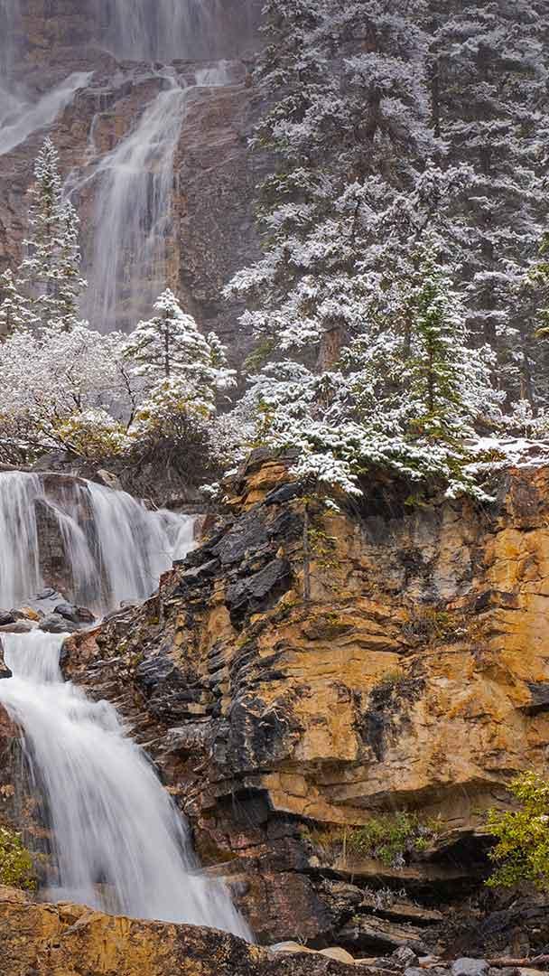 Jasper National Park boasts numerous breathtaking waterfalls, but the multi-tiered cascade of Tangle Creek Falls makes for a must-see spectacle. Located off the Icefields Parkway (Highway 93) in Alberta, the falls are easily accessed. Tangle Creek Falls" misty spray can be felt out on the highway itself. If you"re looking to capture some breathtaking shots, it may be worth getting off the highway and going closer to the falls to truly soak in its beauty.