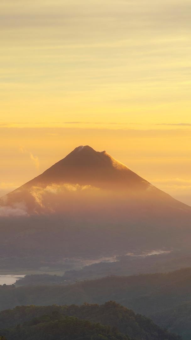 Greetings from tropical Costa Rica! The conical Arenal Volcano rises to an impressive height of 5,437 feet, standing tall above the surrounding rainforest and Lake Arenal, the largest lake in the country. The sleepy mountain roared to life in a massive 1968 eruption that buried about 6 square miles under rocks, lava, and ash and devastated three villages. The last significant volcanic activity there took place in 2010, and the once lava-lit peak is currently dormant. With over 500 species of birds, Arenal Volcano National Park is a must-visit location for birdwatchers. The park is also home to a diverse range of flora and fauna, including red brocket deer, pumas, white-faced monkeys, orchids, heliconias, and ferns. Arenal makes for an imposing and beautiful sight, towering over the tropical trees.