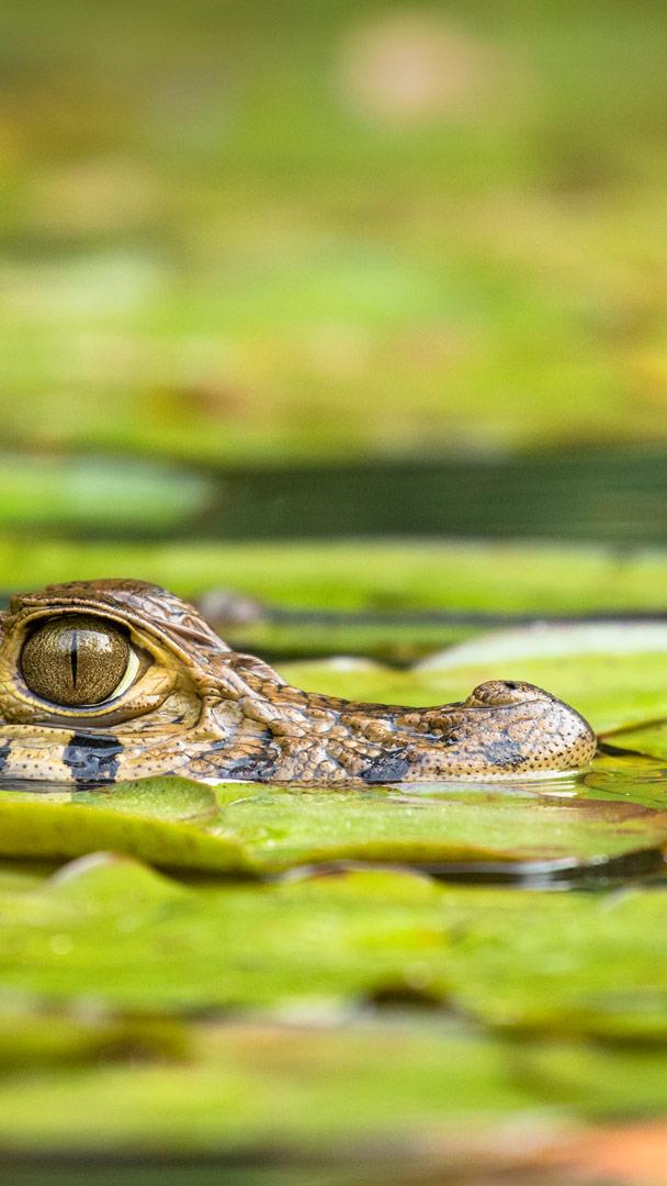 Young black caiman, Tambopata National Reserve, Peru © Maxime Aliaga/Minden Pictures