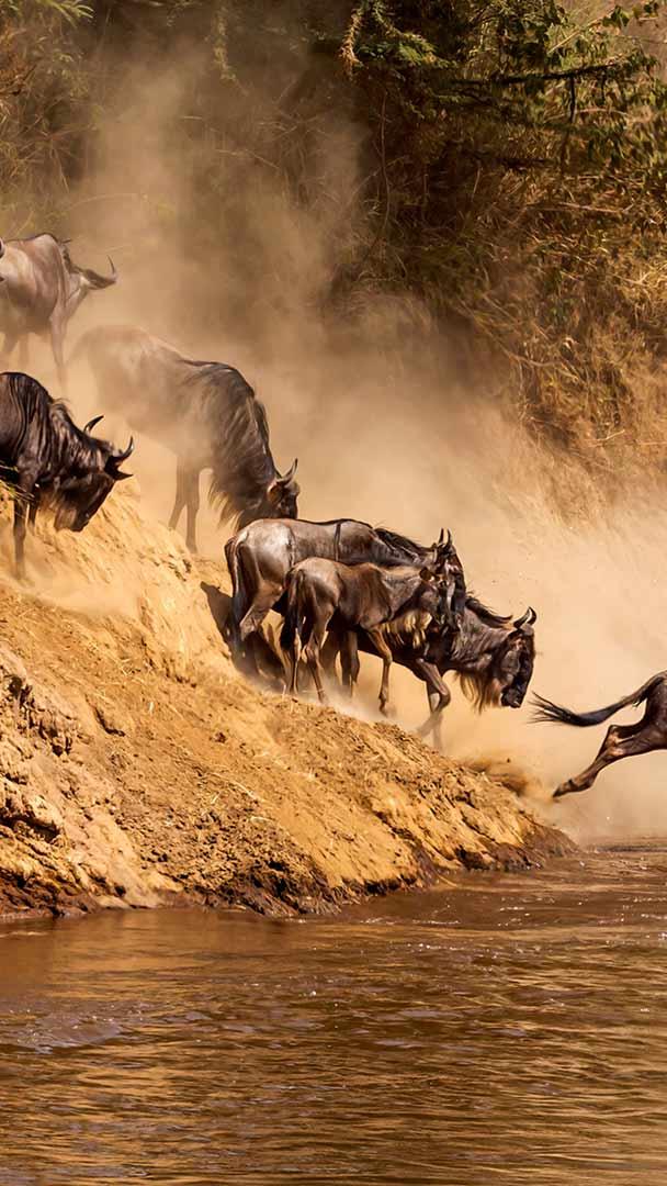Great wildebeest migration at Mara River, Kenya © Ayzenstayn/Getty Images